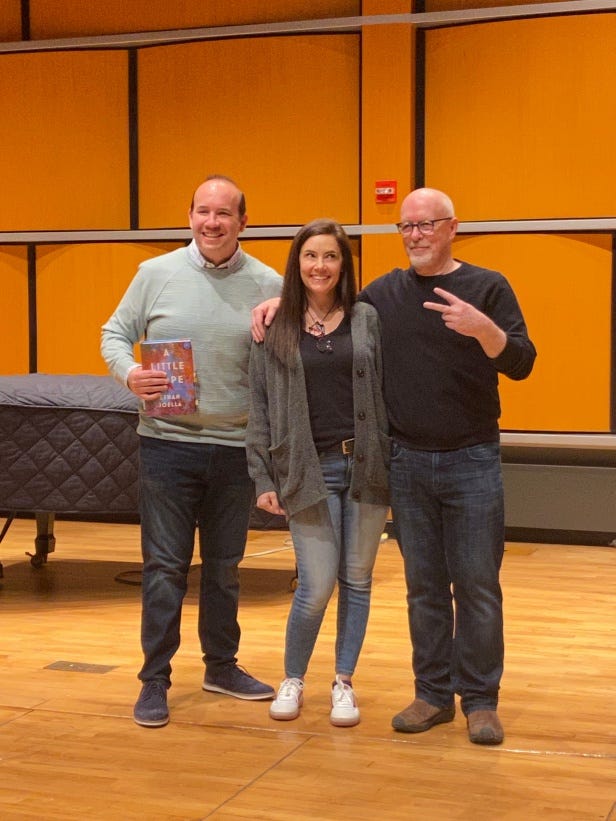Joella read from A Little Hope, a book of literary fiction about twelve people and their interconnected lives. It is a story of hope, grief, and relationships of all kinds. His words brought tears to the audience. The resounding applause - sandwiching the reading - graced the Recital Hall as the night came to a close.