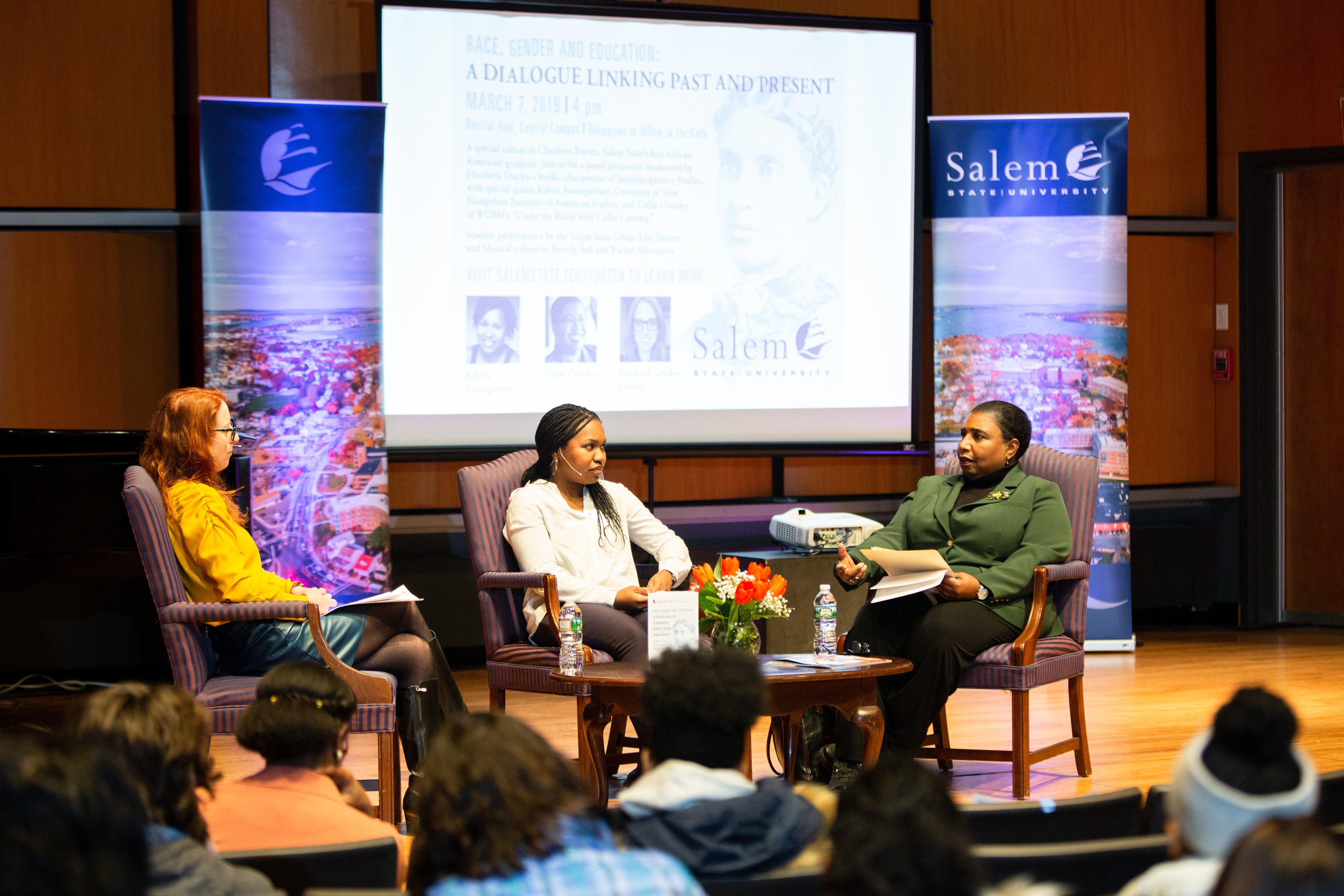 Nate Bryant, Chief of Staff was our official host of the event for the evening. Bryant expressed that the title “A Dialogue Linking Past And Present” is apropos for today as some of the challenges that Charlotte faced is certainly relevant to today. Bryant expressed optimism that the evening’s panel discussion would be quite enlightening. He also assured the audience that we would be highly entertained in regards to the program lineup that included not only a panel discussion, but also performances by Salem State students and faculty. Bryant also added, “I am confident that you will be educated on Charlotte and the educational landscape from the race and gender discussion, as well as entertained by the engaging dialogue to the musical performances and our student performances. So sit back and enjoy.”